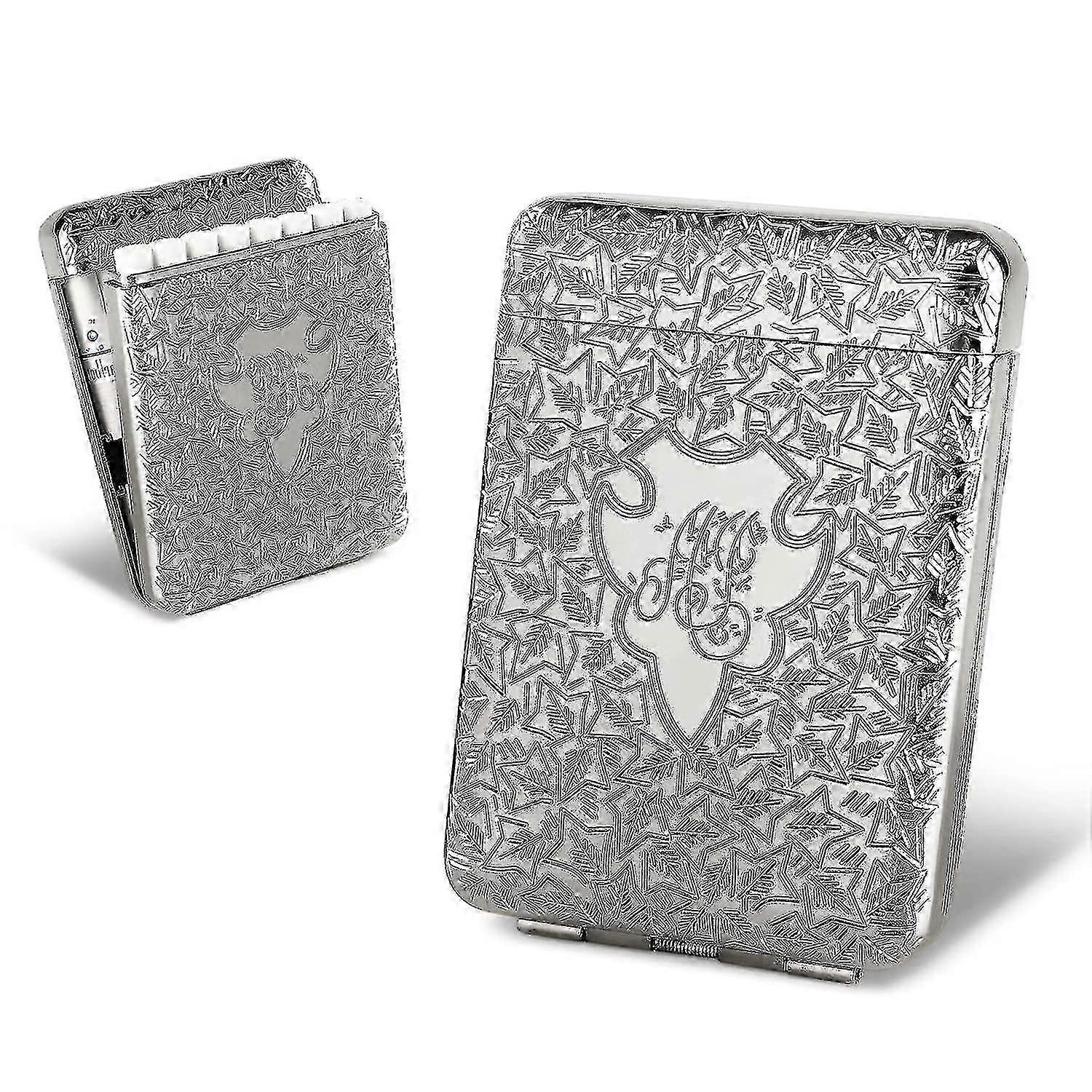 Metal Cigarette Case, Vintage Weed Cigarette Holder, Peaky Blinders Box For 16 King Size 84mm Cigarettes, Unique Birthday Gifts For Women Men (silver)