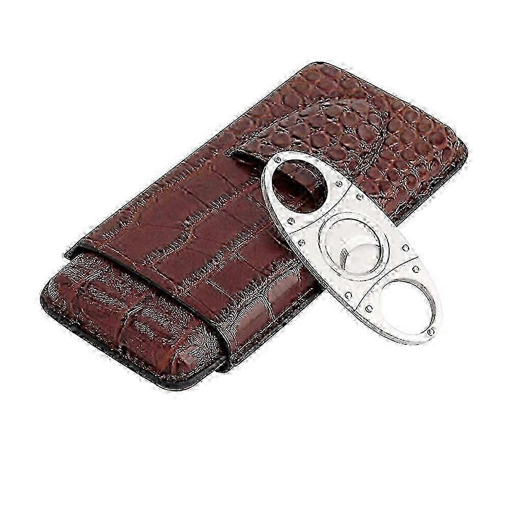 Brown Leather Cigar Case Including Cutter Set Leather Cigar Case Traveling 3 Tubes Humidor Box Packed by Nice Gift Box (Brown)