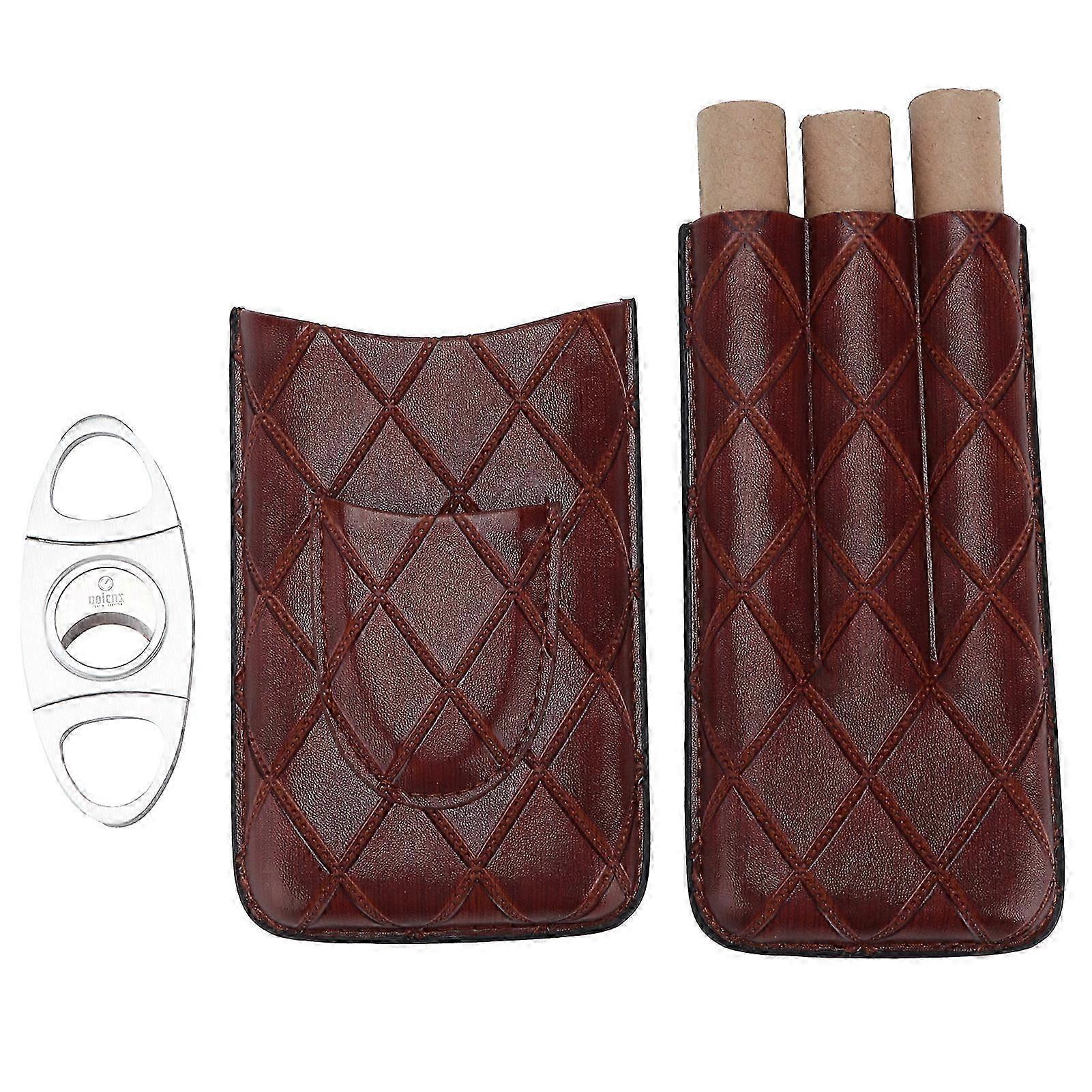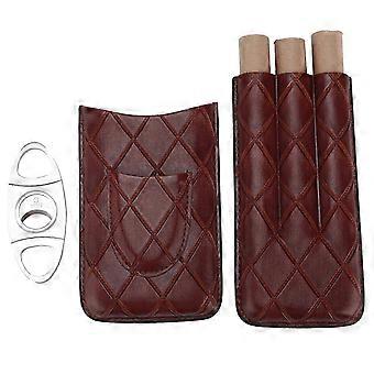 Cigar Case 3 Fingers Portable HandMade Exquisite Cigar Holder with Stainless Steel Cutter