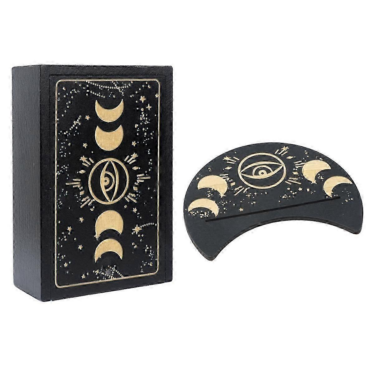 Wooden Tarot Card Case and Stand Holder, Tarot Card Box Fortune Telling Trinket Keepsake Box,Displa