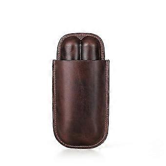 Cigar Travel Case for 2 Cigars Genuine Oil Leather Humidor Cigar Pouch Portable Cigar Storage Case (Brown)