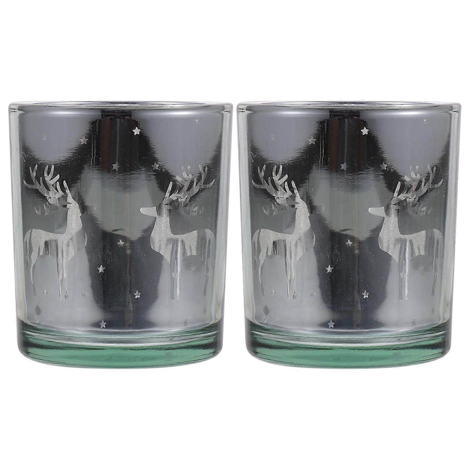 Candlestick Holders Votive Holders For Tea Lights Home Decoration Glass Material Christmas Day 2Pcs