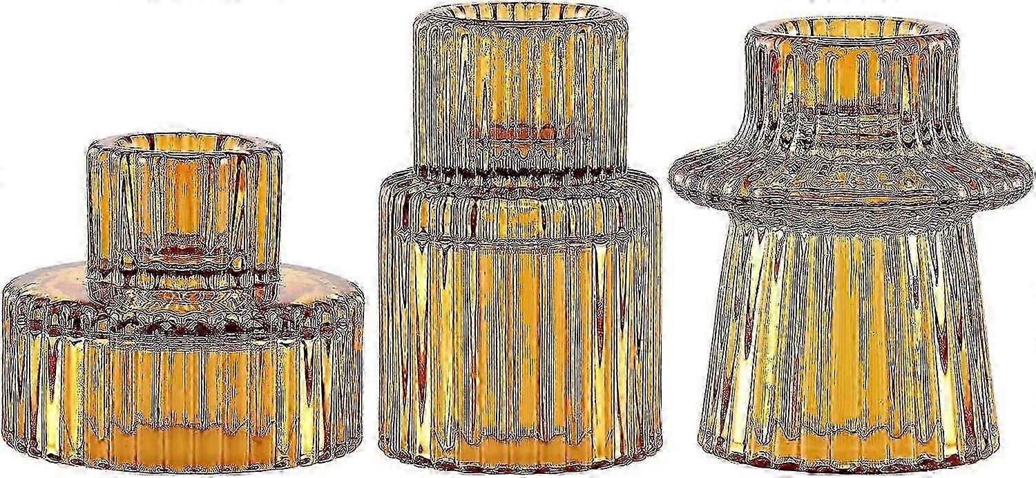Clear Glass Candle Holders for Pillar Candles - Tabletop Decorative Candlestick Holders Set of 3 Fashion Taper Candle Stand for Dinner Wedding Party (