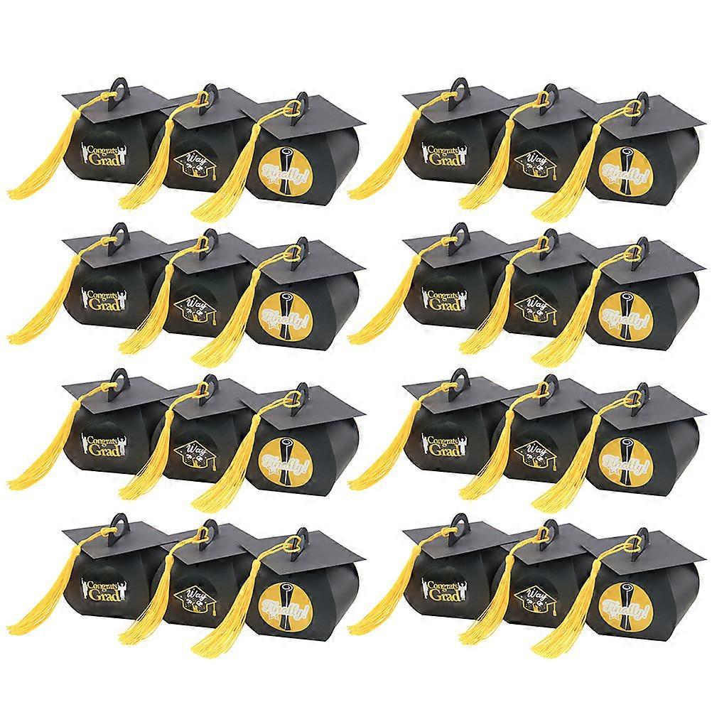 Graduation Party Candy Holders 24pcs Cap Themed Packaging Boxes with Stickers for Gifts and Celebration Decor