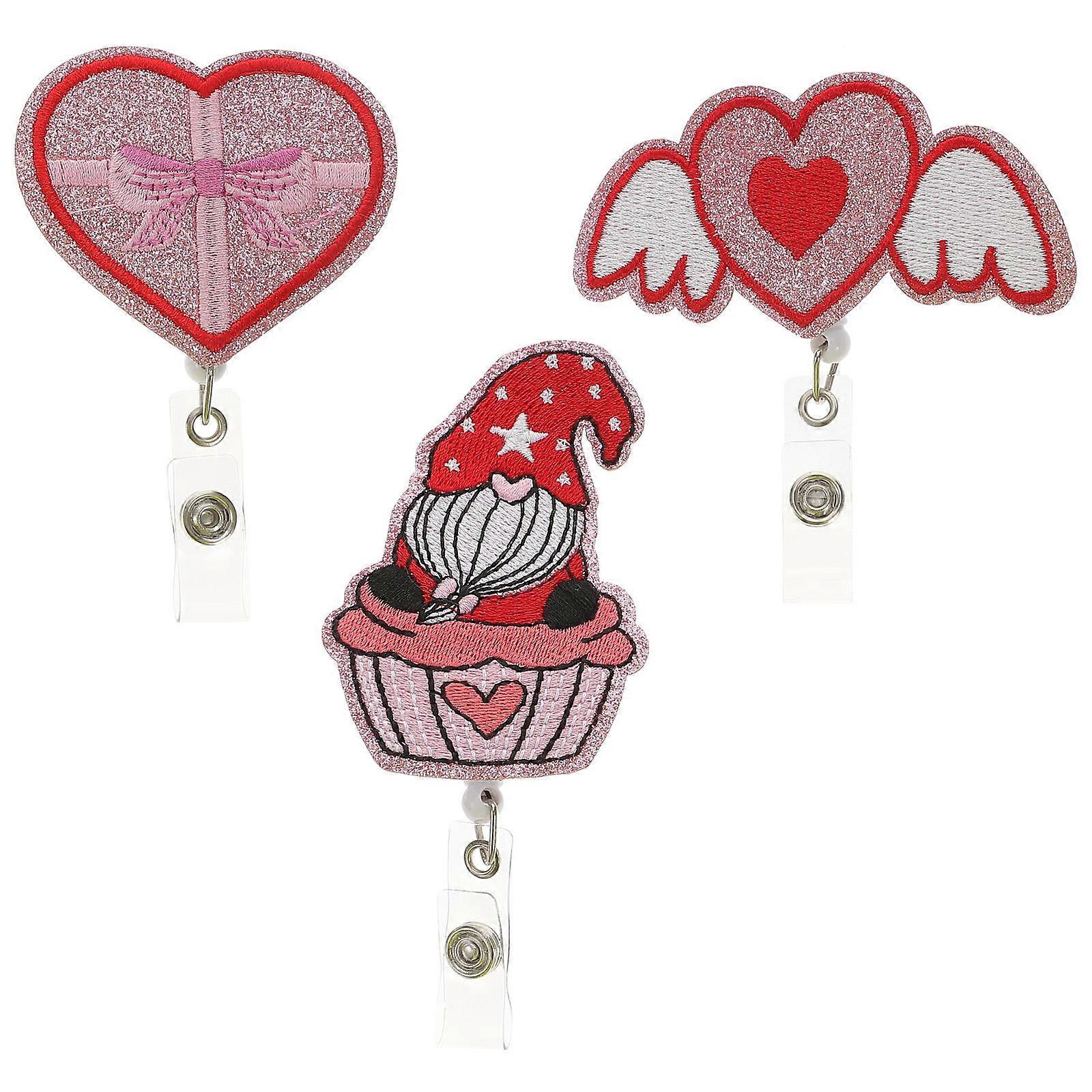 Cute Retractable Badge Holders For Students And Medical Staff Featuring Decorative Heart Shape 3Pcs