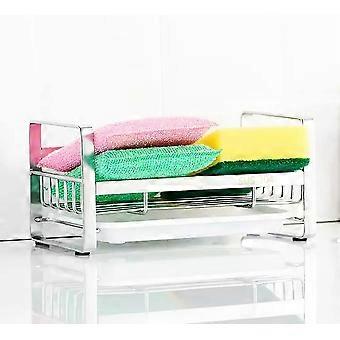 حامل الإسفنج ، 304 الفولاذ المقاوم للصدأ بالوعة منظمة تخزين حامل الإسفنج ، مع صينية بالتنقيط قابلة للإزالة