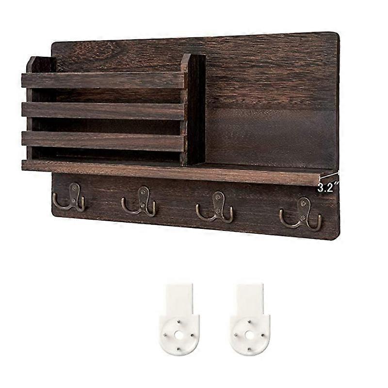 Mail Holder Wooden Mail Sorter Organizer with 4 Double Key Hooks and a Floating Shelf Rustic Home