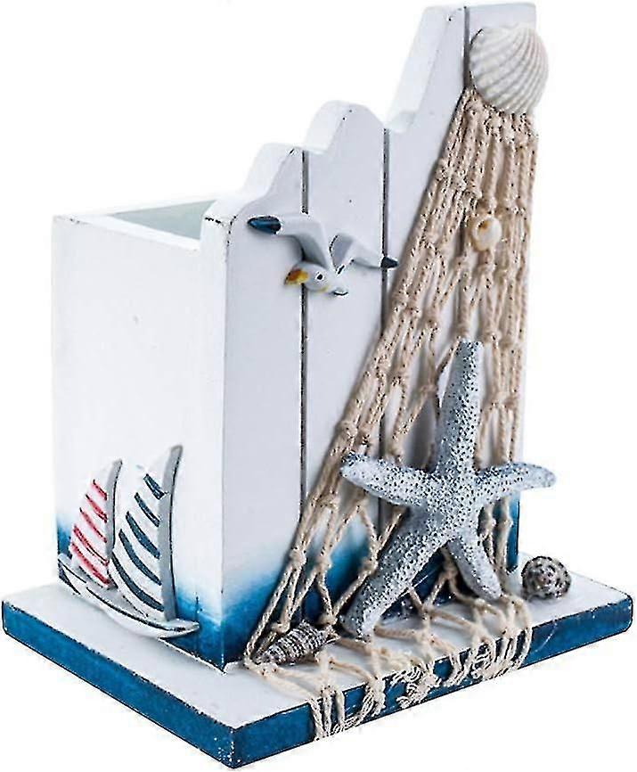 Wooden Pen Holder Pen Container Maritime Pen Organizer Nautical Desk Decoration Makeup Brush Holder For Home Office - q36