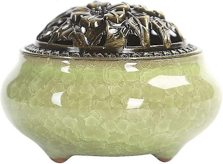 Incense Burner Holder,aromatherapy Oil Burner,ceramic Stick Incense Burner Cone Incense Holder With Alloy Cover