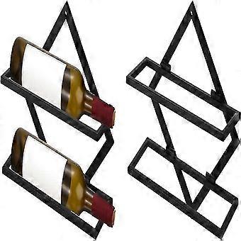 حامل النبيذ المثبت على الحائط 2 مجموعة ، عرض النبيذ الحديدي يحمل 2 زجاجات الخمور منظم رف النبيذ المعدني ، أسود