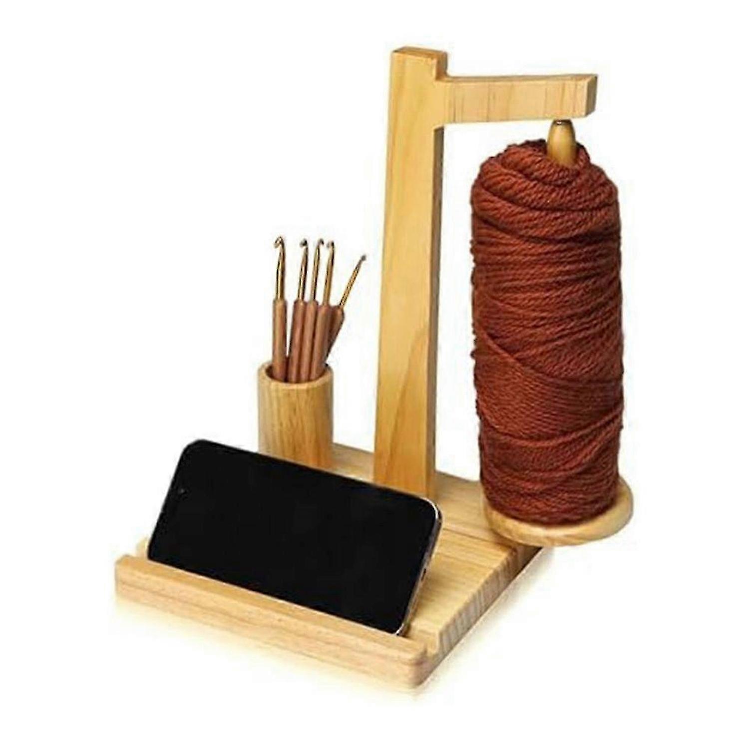 Wooden Yarn Holder Phone Stand, Wooden Yarn Holder with Phone Stand, Magnetic Wooden Yarn Spool Rack Wood Color