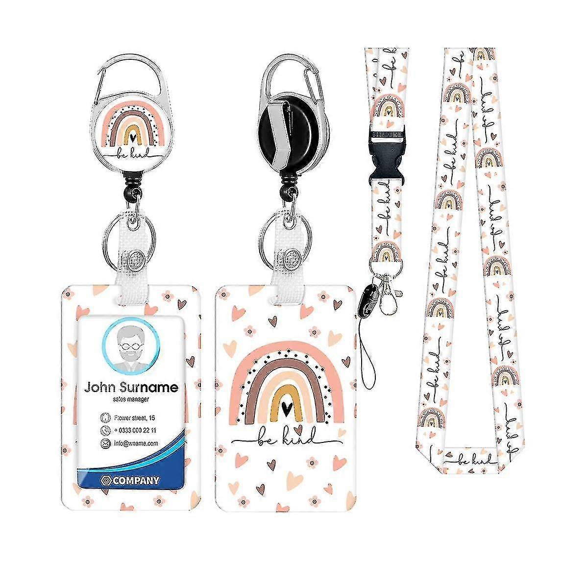 Id Holder With Lanyard And Retractable Reel Clip, Flowers Pattern Retro Floral Card Name Tag Lanyar Xinda