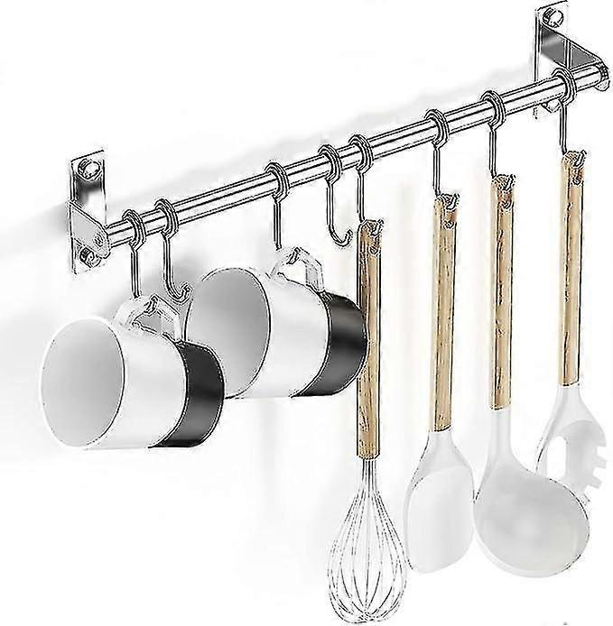 Kitchen Utensil Holder, Stainless Steel Utensil Hanging Rack, Wall-mounted Kitchen Utensil Rack With 8 Hooks For Bathroom, 50cm No Drilling