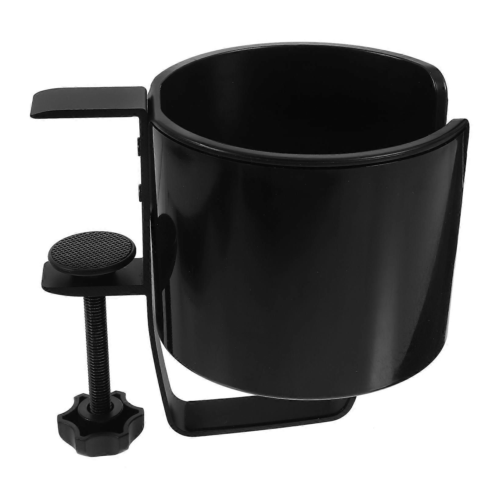 Desk Cup Holder with Headphone Hook, Clamp On Table Mount for Home Office and Gaming Desks, Universal Cup Design