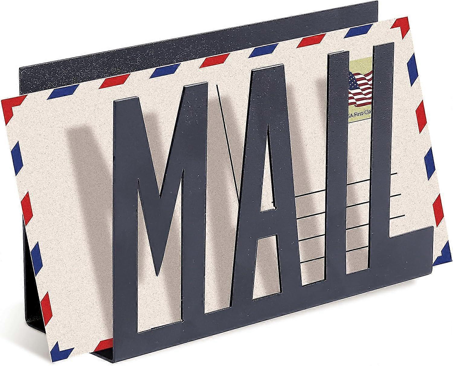 6 Inch Mail Holder,Mail Organizer Black Metal Letter Sorter Tabletop Mail Cutout Organizer Mail Letter Document Stand with Letter Opener for Desktop H