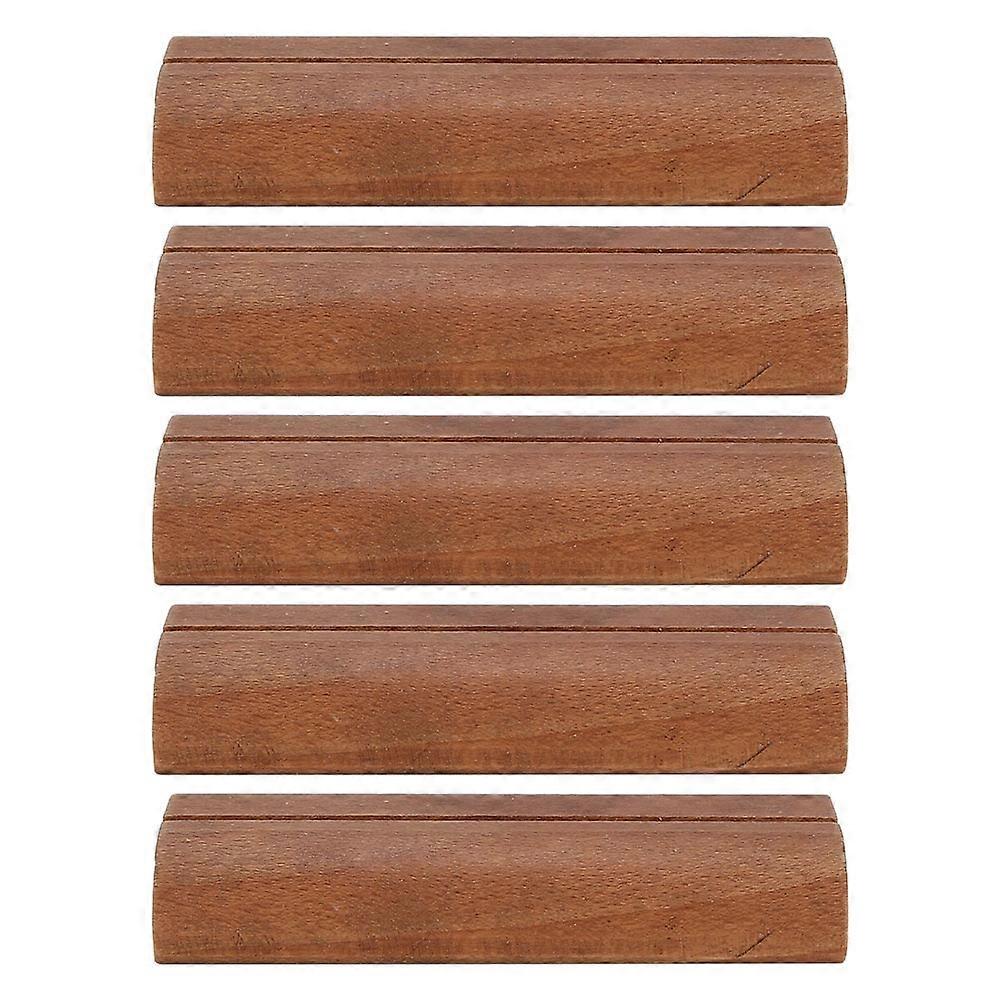 5Pcs Wooden Business Card Holder Photo Display Stand Note Clamp Office Sign In Supplies(Dark Color )