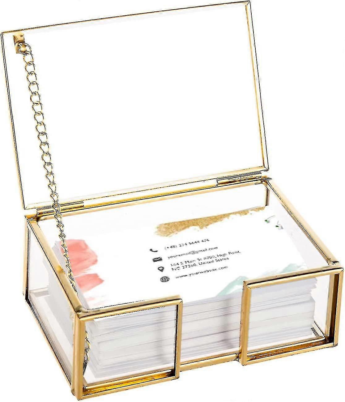 Gold Business Card Holder Glass Business Card Box For Desk Office Countertop/YY
