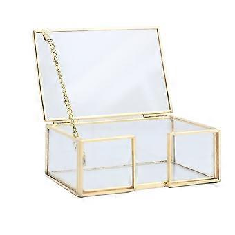 Business Card Holder, with Mirror Bottom and Stand for Office Desktop Countertop, Glass, Gold