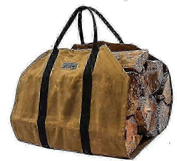 Heavy duty firewood carrier for logs with sturdy handles and waxed canvas