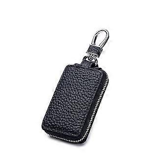 Car Key Case Holder Leather Key Fob Case with Metal Hook and Keyring Zipper Bag for Remote Key Fob black