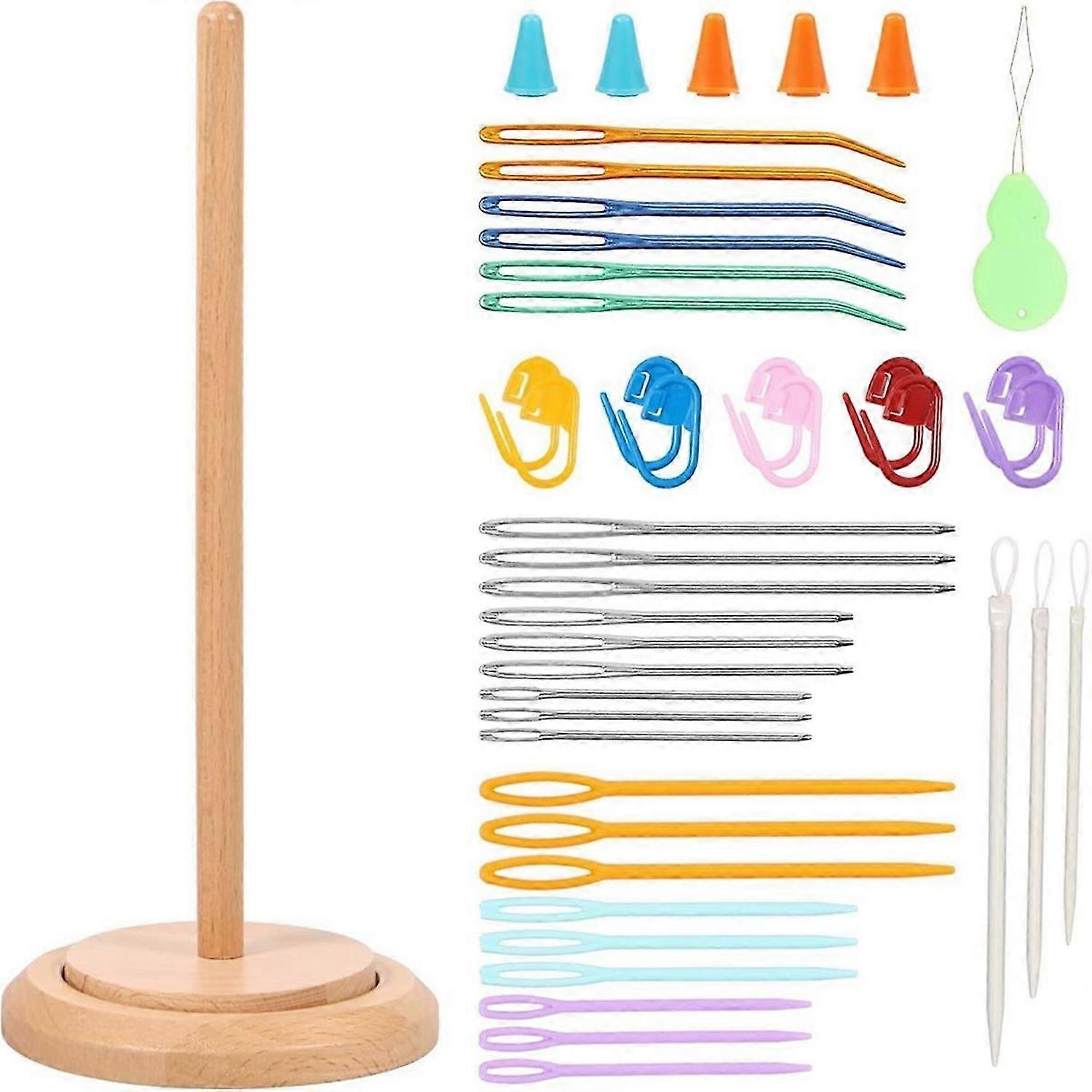 Wood Yarn Holder, Portable Smooth Yarn Holder Dispenser Kit with Bearing Twirling Mechanism for Crocheting and Knitting