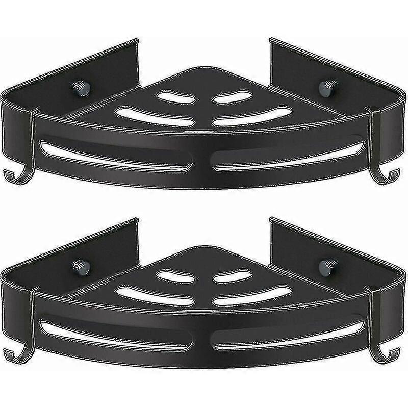 Corner Shower Holder Without Favorite, Rust-resistant Aluminum Corner Shower Holder, Black Shower Basket With 4 Hooks, Bathroom Holder For Shampoo And