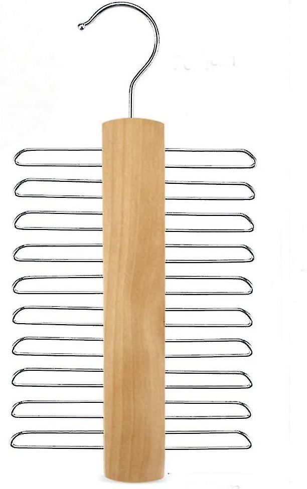 Wood Tie Rack Holder, Tie And Belt Hanger, Closet Organizer And Storage Rack With Non-slip Clips Finish 20 Hooks , 360 Degree