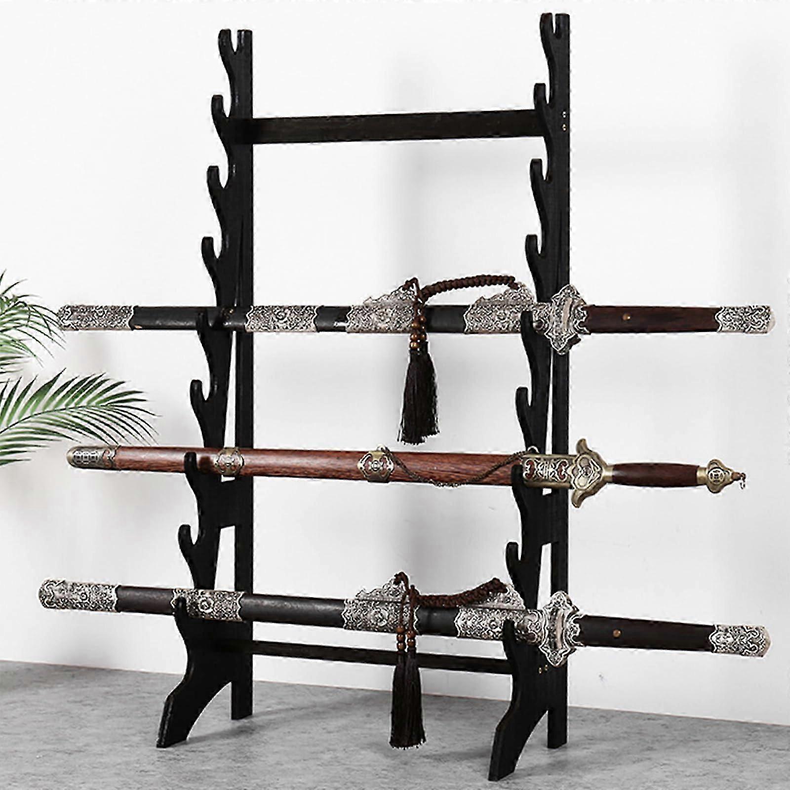 Multilayer Sword Stand for Katana Samurai Swords, Floor Standing Wooden Display Holder, Black Vertical Fishing Rod Stand 9 In