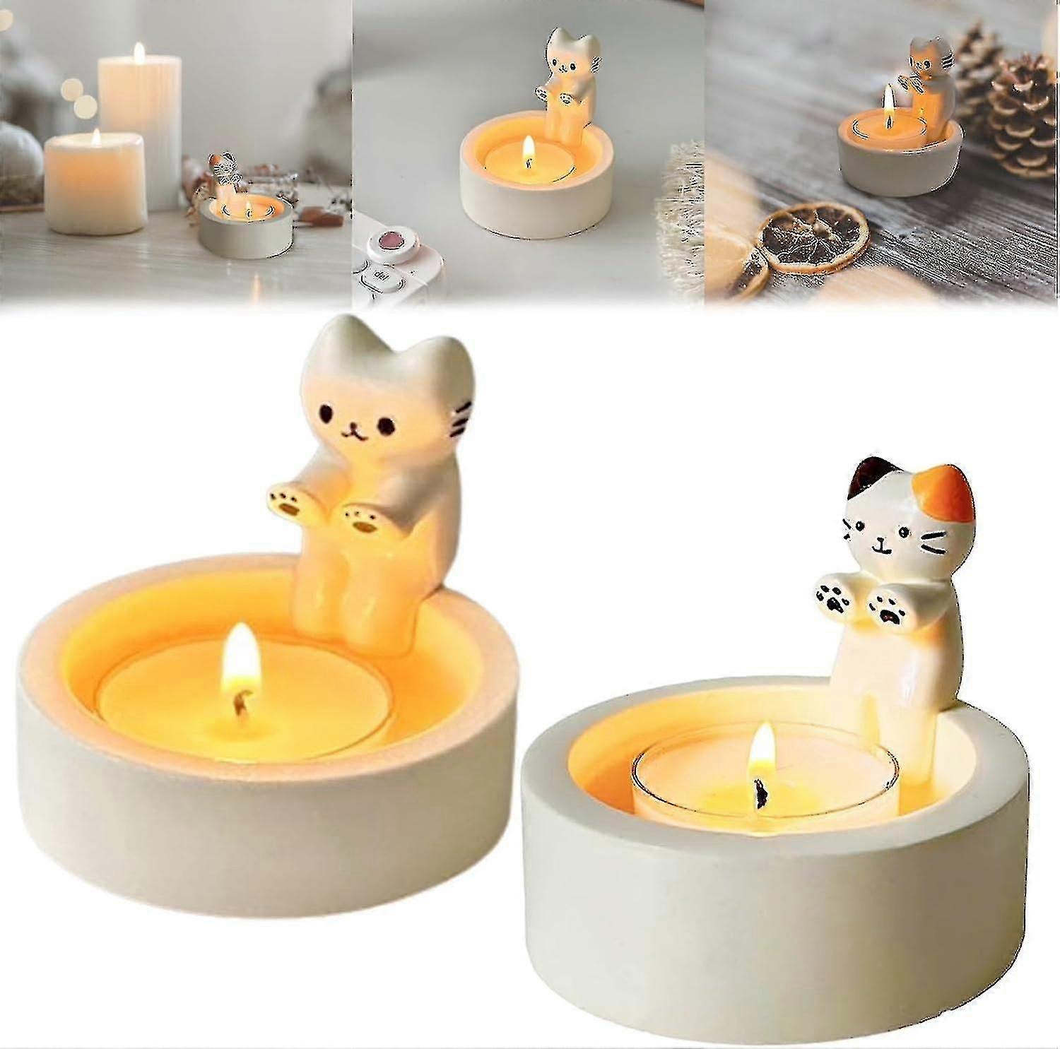 Cartoon Kitten Candle Holder, Kitty Warming Its Paws Cute Scented Light Holder, Cute Cat Tea Light Holder, Handmade Cat Candle Holder Gift - J
