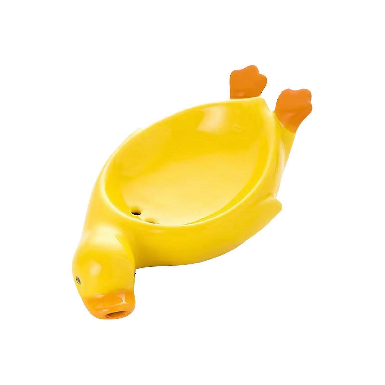 Cute Duck Ceramic Soap Holder With Self Draining Design For Bathroom And Kitchen