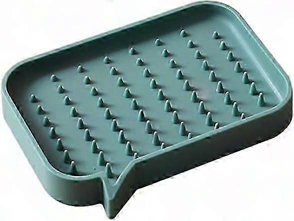 Green Silicone Self-Draining Soap Dish Holder for Bathroom Shower, Bar Soap & Sponge Tray (1PC)