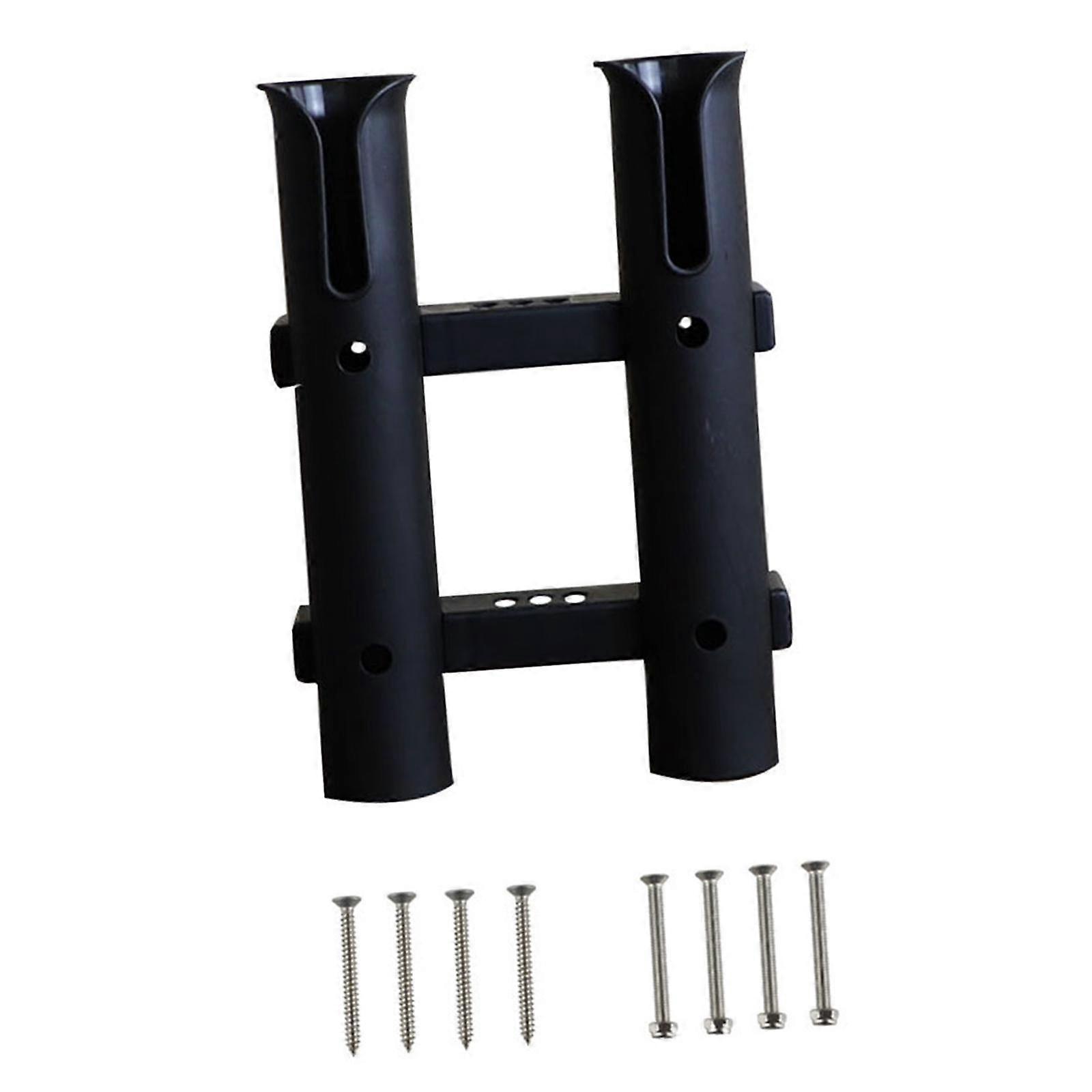 2-line design holds 2 fishing poles upright for storage against a boat, during transport, or on a garage wall. Made of nylon material with precision craftsmanship, sturdy and reliable for long-term use. No tools required for installation; features a snap design, fixed with countersunk screws, and can be completed in just minutes. Suitable for most cars, freshwater and saltwater use, and compatible with various fishing rods. Fixed positioning curved design ensures smooth edges without burrs, protecting the fishing rod from damage. Material: Nylon; Size: 18.1cmx27.1cm/7.13inchx10.67inch; Color: as shown in the picture. Package Includes: 1 Fishing Rod Holder, 4 Cross Countersunk Head Tapping Screws, 4 Cross Countersunk Head Screws.