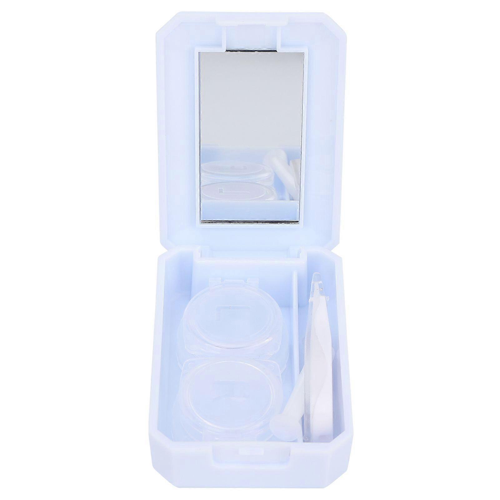 Contact Lens Box Holder Soak Storage Container with Mirror Bottle Tweezers Applicator Rod (Blue) 3#
