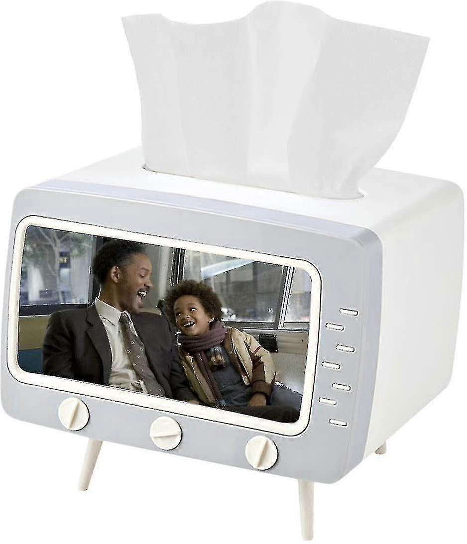 Facial Tissue Box Holder With Phone Mount, Tv Shaped Tissue And Smartphone Holder, Versatile Tissue Box Cover For Bathroom/living Room/bedroom