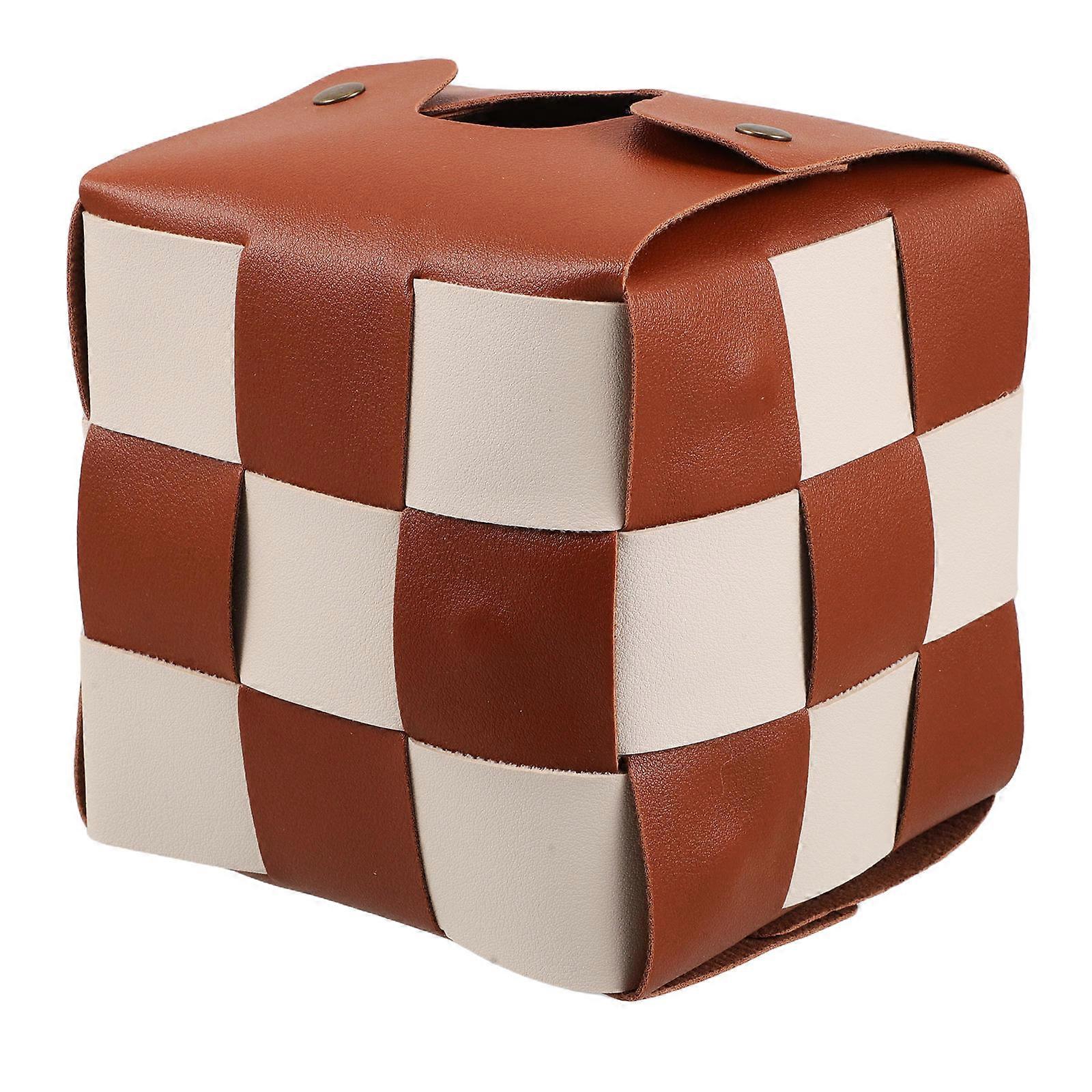 Compact Square Tissue Box Holder Artificial Cover for Bathroom, Car, Vanity, and Desk Use – Portable Tissue Dispenser with Luxurious Design, Brown