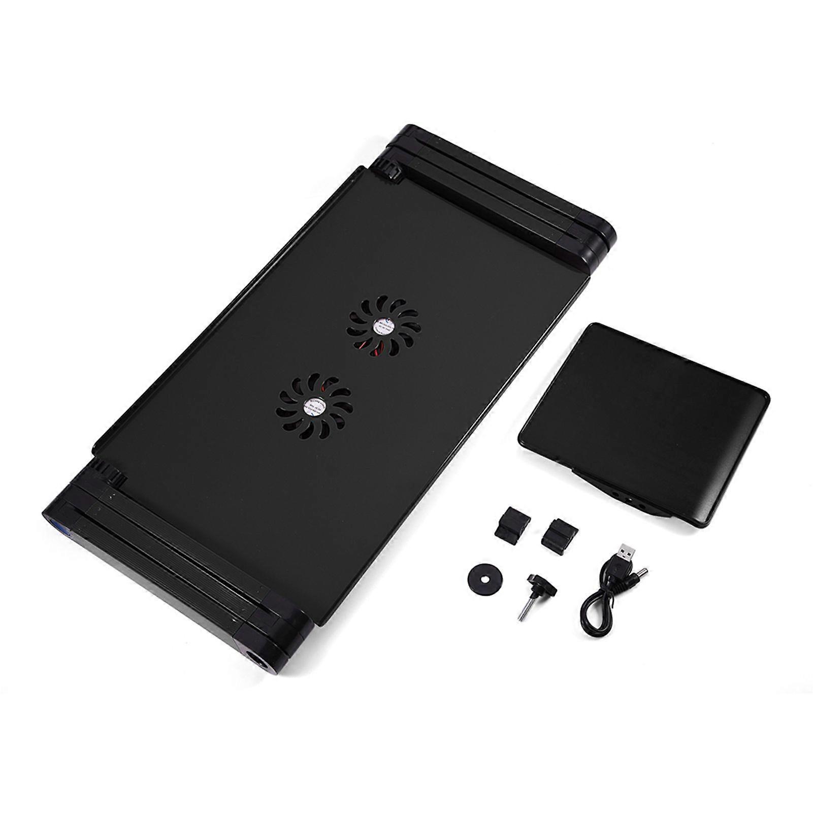 360 Adjustable Foldable Laptop Desk Table Stand Holder w/ Cooling Dual Fan Mouse Boad Black