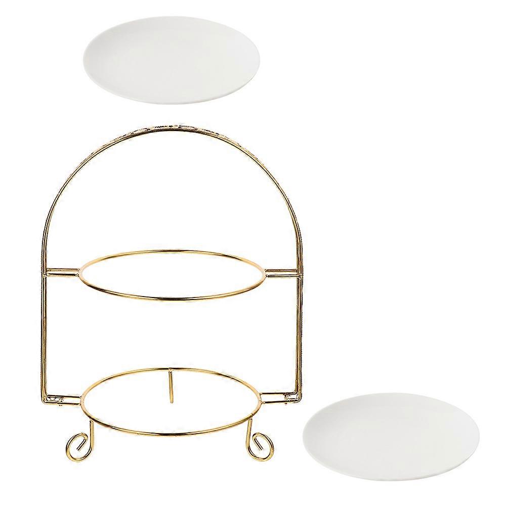 Cupcake Display Holder Iron Double Layer Dessert Pastry Stand Set Modern Elegant For Wedding Birthday 8 Inch Plates 1Set