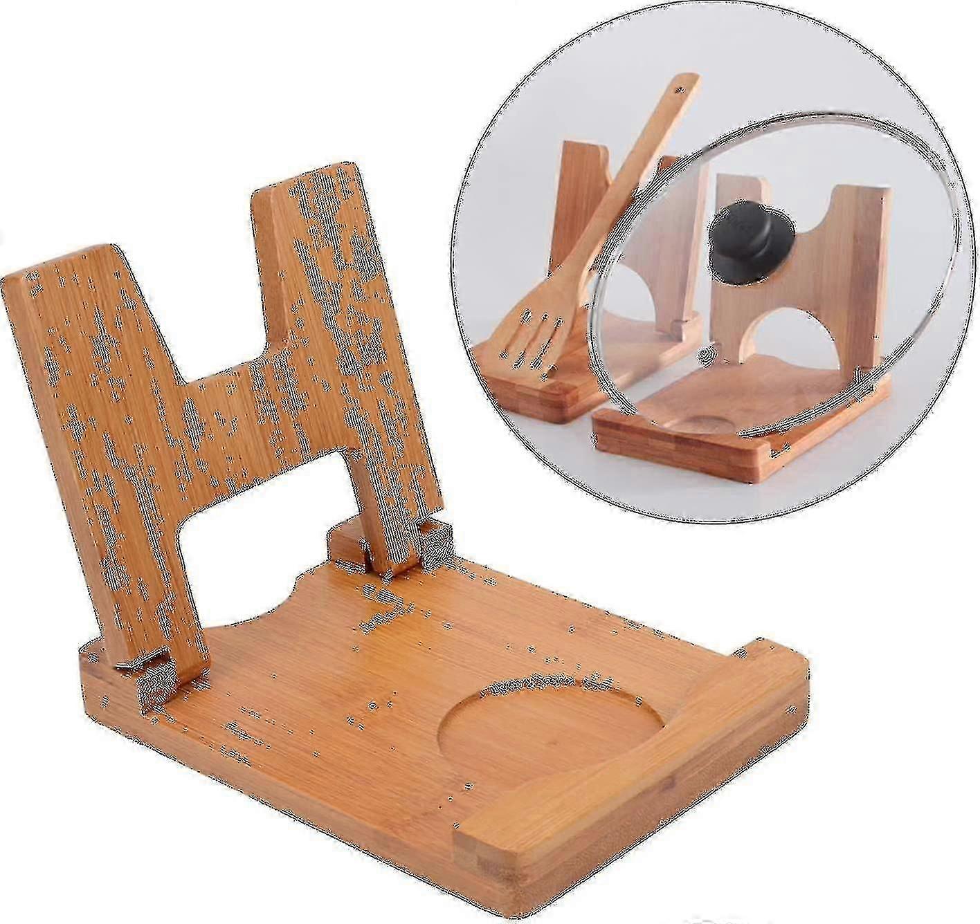 ECO-FRIENDLY MATERIAL: Made from premium bamboo, food grade safe, hard and durable, not easy to deformedDRAINING TRAY DESIGN: Designed with a drain tray, easy to dry your lids, spoons, splatter and other cooking utensils, and keep your counters and stovetops clean and tidyFOLDABLE AND SPACE SAVING: The lids holder is foldable, easy to storage, just fold it when not in use to save space of your stovetopsMULTI-PURPOSE: Not only perfect for placing pot lids and spoons, but also good for chopping board and other tableware, an ideal helper for a chef or a kitchen loverDISHWASHER SAFE: Easy and convenient to clean, just rinse it with clean running water, and dry with a kitchen towel.You'an store products