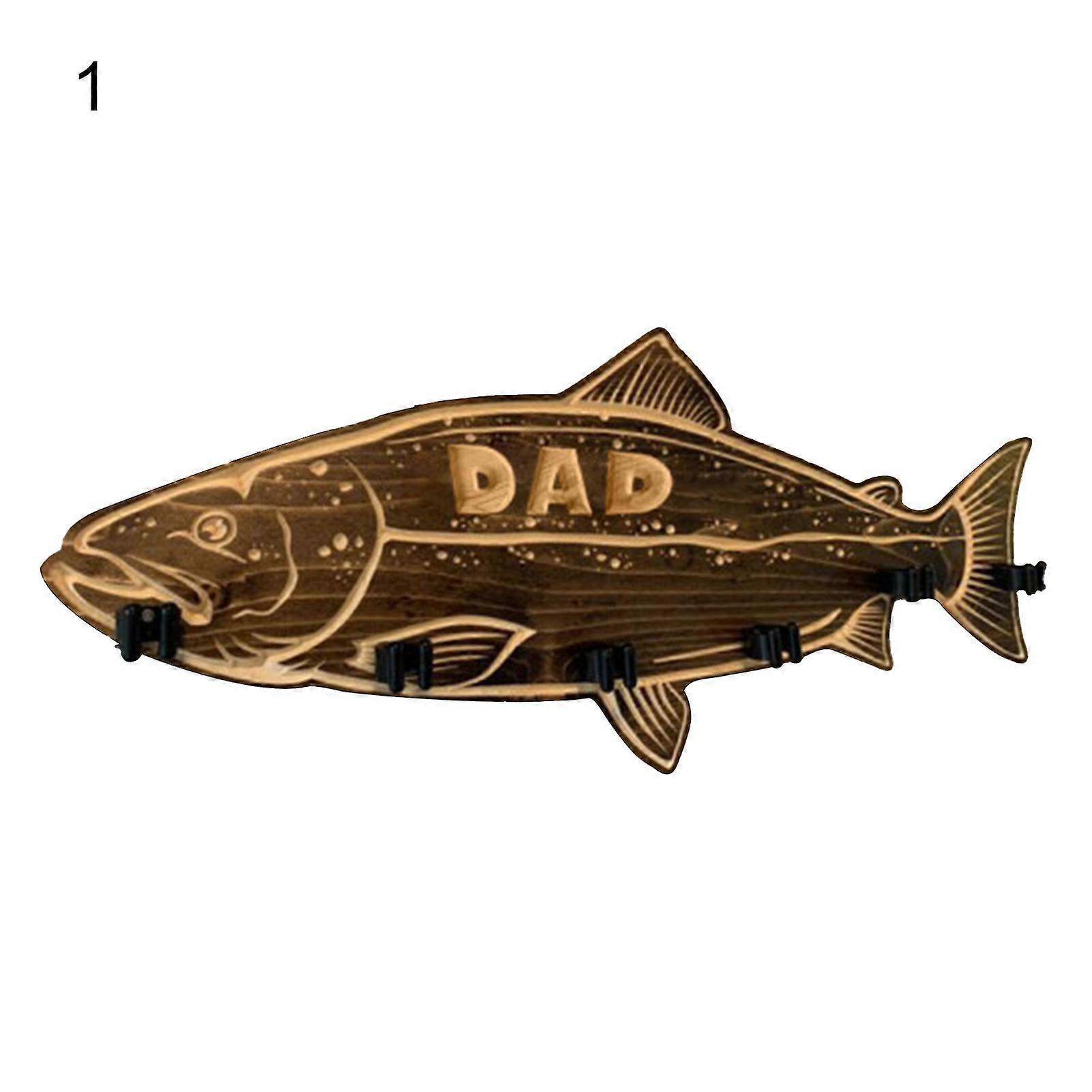 Fishing Rod Holder Wall Mountable Delicate Wood Fathers Day Gifts Fishing Pole Rack Ornament For Home(1Pcs-Sea Bass)