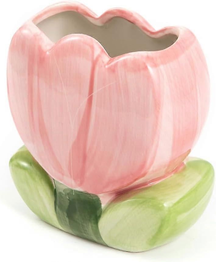 Flower Pencil Holder Ceramic Desktop Ornaments Desk Office Organizer Stationery Shelf Storage Jar (Pink)