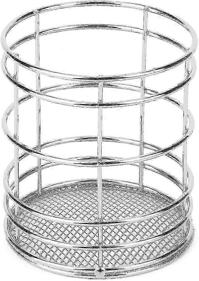 Metal Wire Mesh Pencil Holder, Stainless Steel Pen Holder Colorful Pen Organizer Round Make Up Brush Holder for Desktop, Home(Silver)