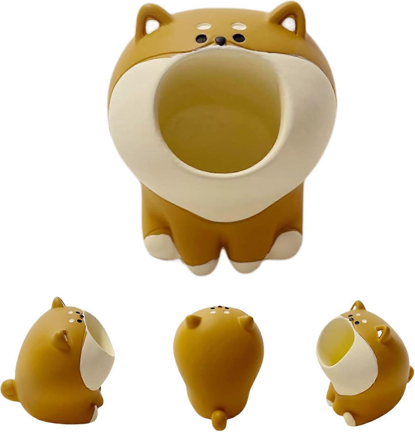 Cute small pencil holder, cute resin cat, dog, dinosaur, rabbit, animal paper clips, toothbrush, mini storage box, desk ornaments (Shiba Inu)