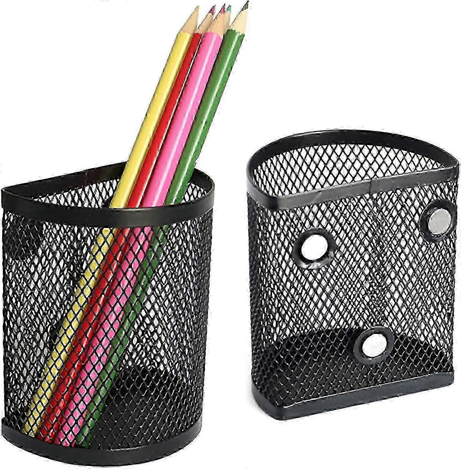 Magnetic Pencil Holder For Refrigerator, 2 Pack Metal Basket Pen Holder Locker Organizer For Work School Office, Black