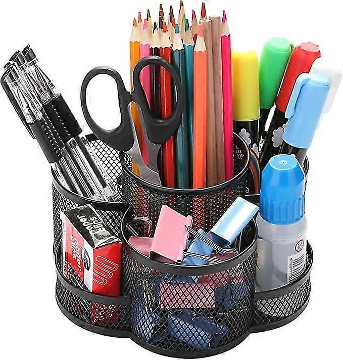 Rotating Desk Pencil Holder, Metal Pen Holder for Desk with Non-Slip Rubber Mat, 360 Rotation and 7 Compartments, Office Supplies Storage Organizer,