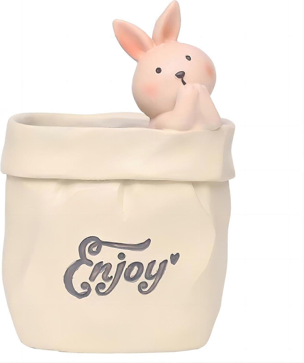 Cute Pen Holder for Desk,Creative Cute Pet Pencil Holder,resin material, Nordic Retro Style Pen Organizer for Desk, Makeup Brush Organizer (Rabbit)