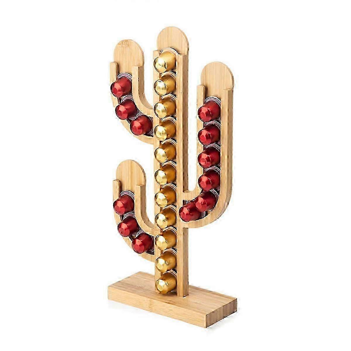 Coffee Pod Holder with Cactus Shape Coffee Bar Decor Removable Coffee Station Organizer Wooden Coffee Station