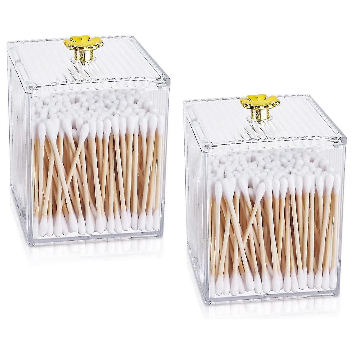 2Pcs Cotton Ball Holder, Q-Tips Holder Clear Modern Bathroom Organizers, Jars with Lids, for Cotton