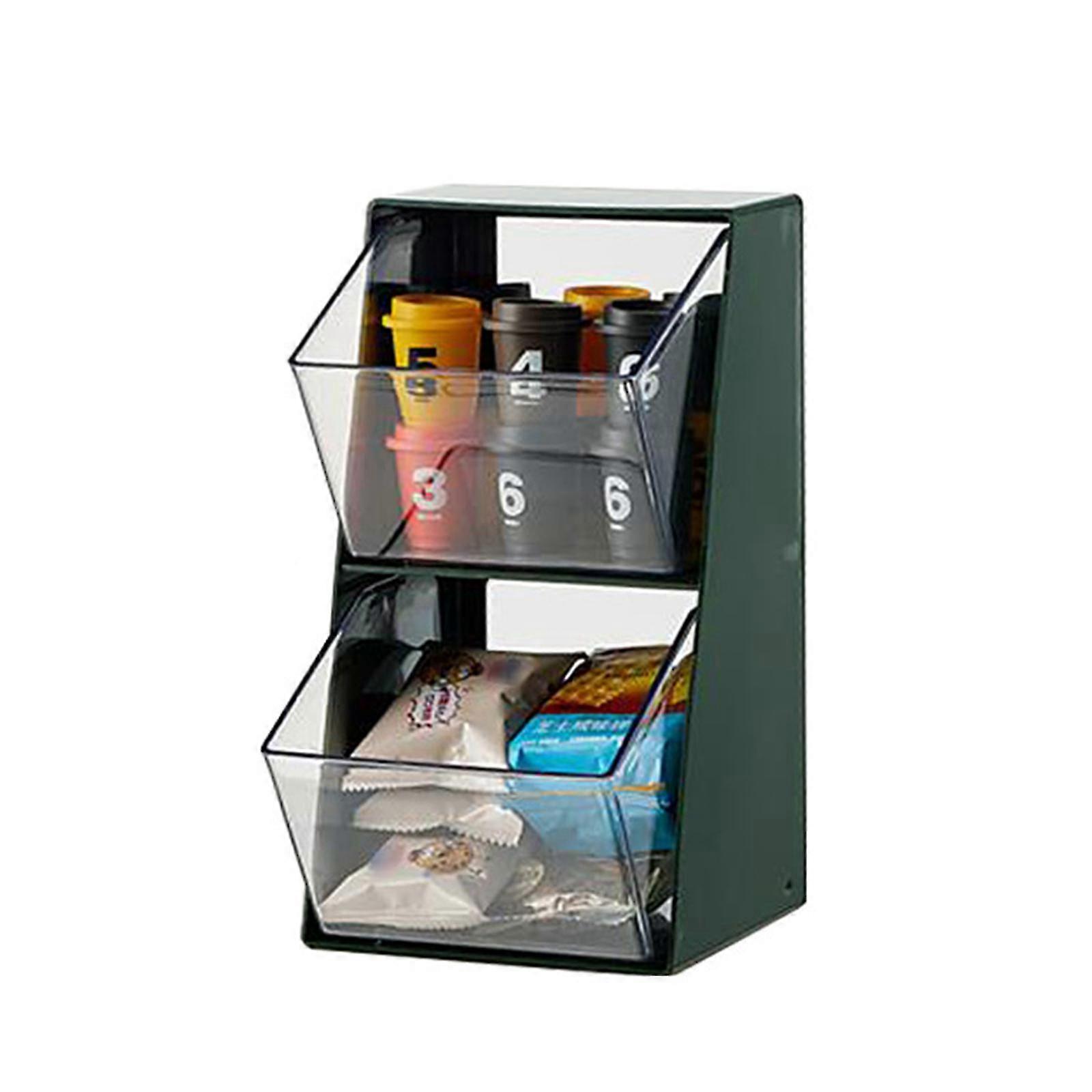 Features: 1. Unique Design: The two layer organizer rack the with sloping design to accommodate your various sizes of snacks, candy, coffee, tea, sugar packets, sweeteners, creamers, drink pods, etc. Also, fit for blush, eye shadow palettes, lip gloss, powder, serums, lotions, hair ties, etc. 2. Multifunctional: Our countertop storage box can be used as snack bin, tea bag organizer, chips organizer, coffee organizer, etc. 3. Strong & Stable Structure: The snack holder not only made of quality PET + ABS materials, not easily deformed, more stable and effectively protect your countertop. 4. Stackable Design: Our snack container rack can be stacked or used separately according to the space of the kitchen cabinet or pantry, to meet your different needs. 5. Versatile: This tabletop organizer rack is perfect for making the most out of your space, great for home, office, apartments, condos, campers, and so on. Specification: Material: PET + ABS Product Color: White, Green Product Size: 13.8 x 12.5 x 25cm Product Weight: 620g Package Included: 1 x Countertop Organizer Rack