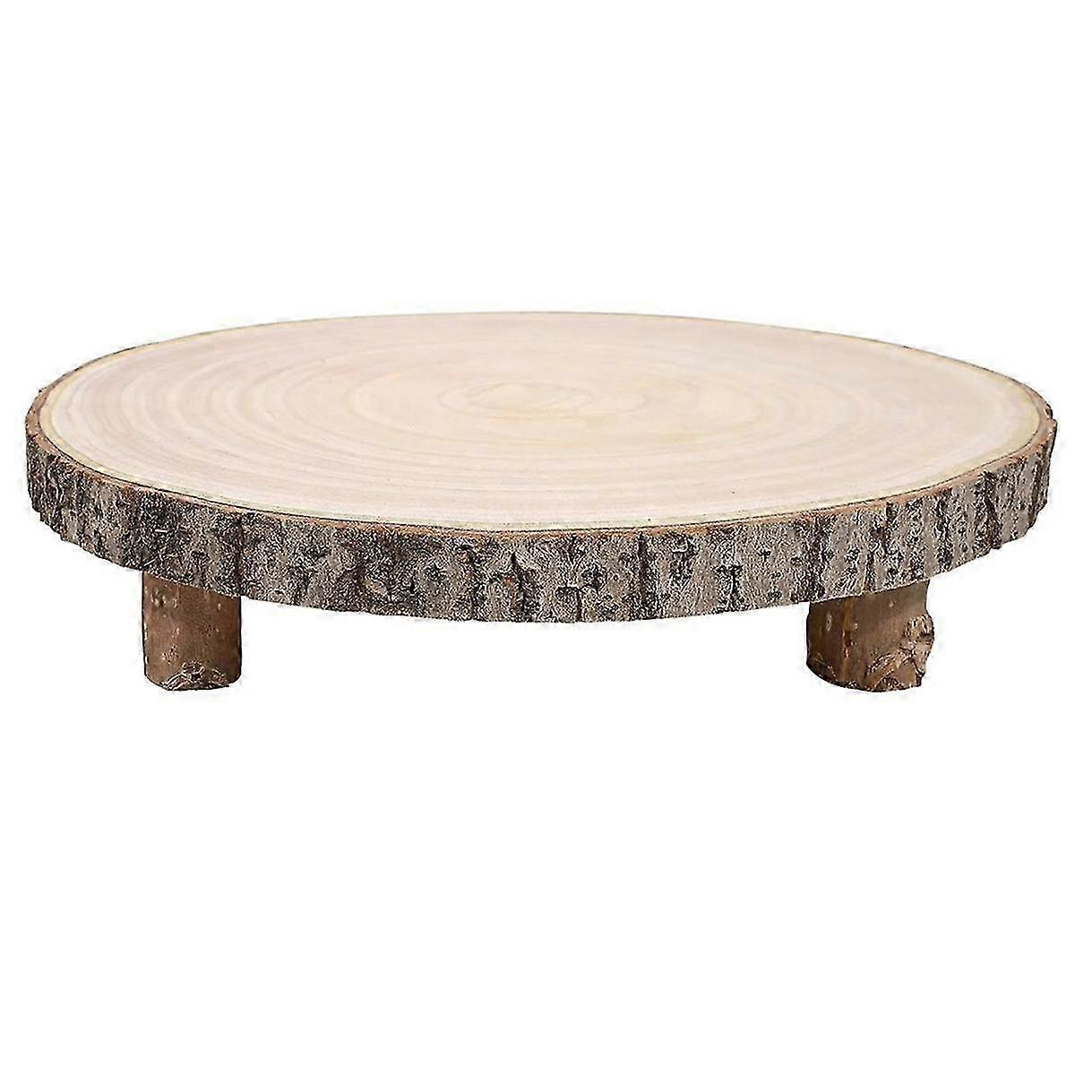 11 Inch Wood Cake Stand, Round Wooden Cupcake Pedestal, Paulownia Wood Slice With Legs, Rustic Cake