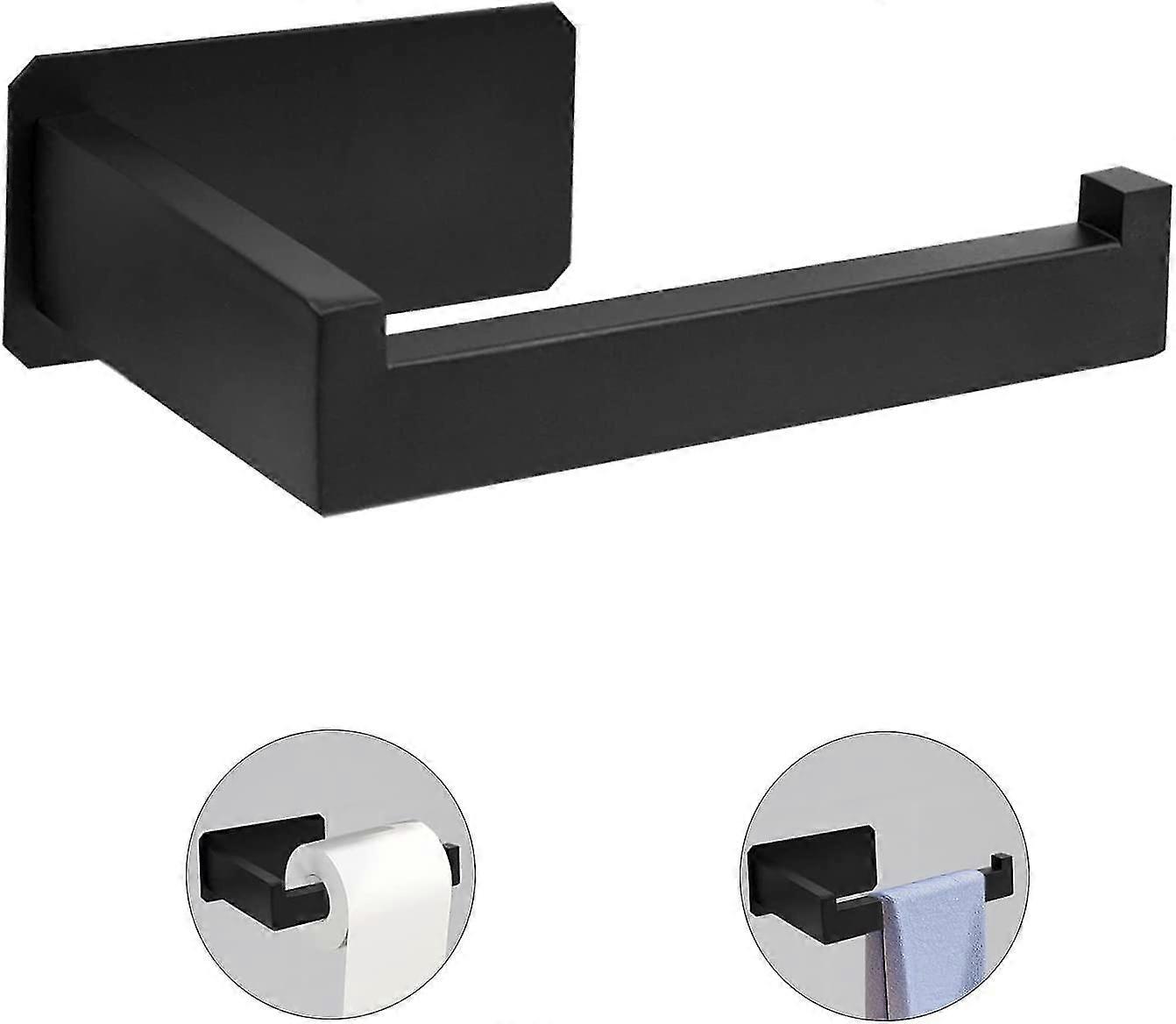 Toilet Roll Holder, Stainless Steel Toilet Paper Holder, Matte Black Toilet Accessories, Bathroom Towel Rack, -3m Adhesive, Strong Adhesion